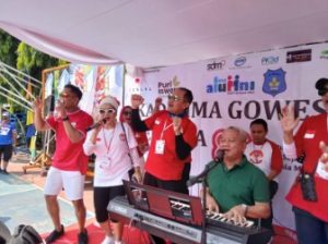 Sebelum Gowes dilaksanakan, peserta warming up dengan aerobik yang sedang viral, yaitu tarian pacu jalur yang dipandu oleh Wawan Safari yang diikuti dengan penuh kegembiraan dari 300 peserta tersebut.
